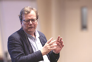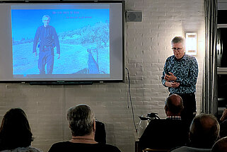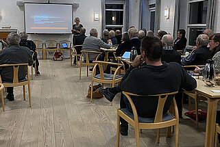 Sådan startede Jørgen Bruun fra Holsted sit foredrag om sin vandretur på 3000 km fra DK til Rom, som han foretog på 92 dage i 2018.